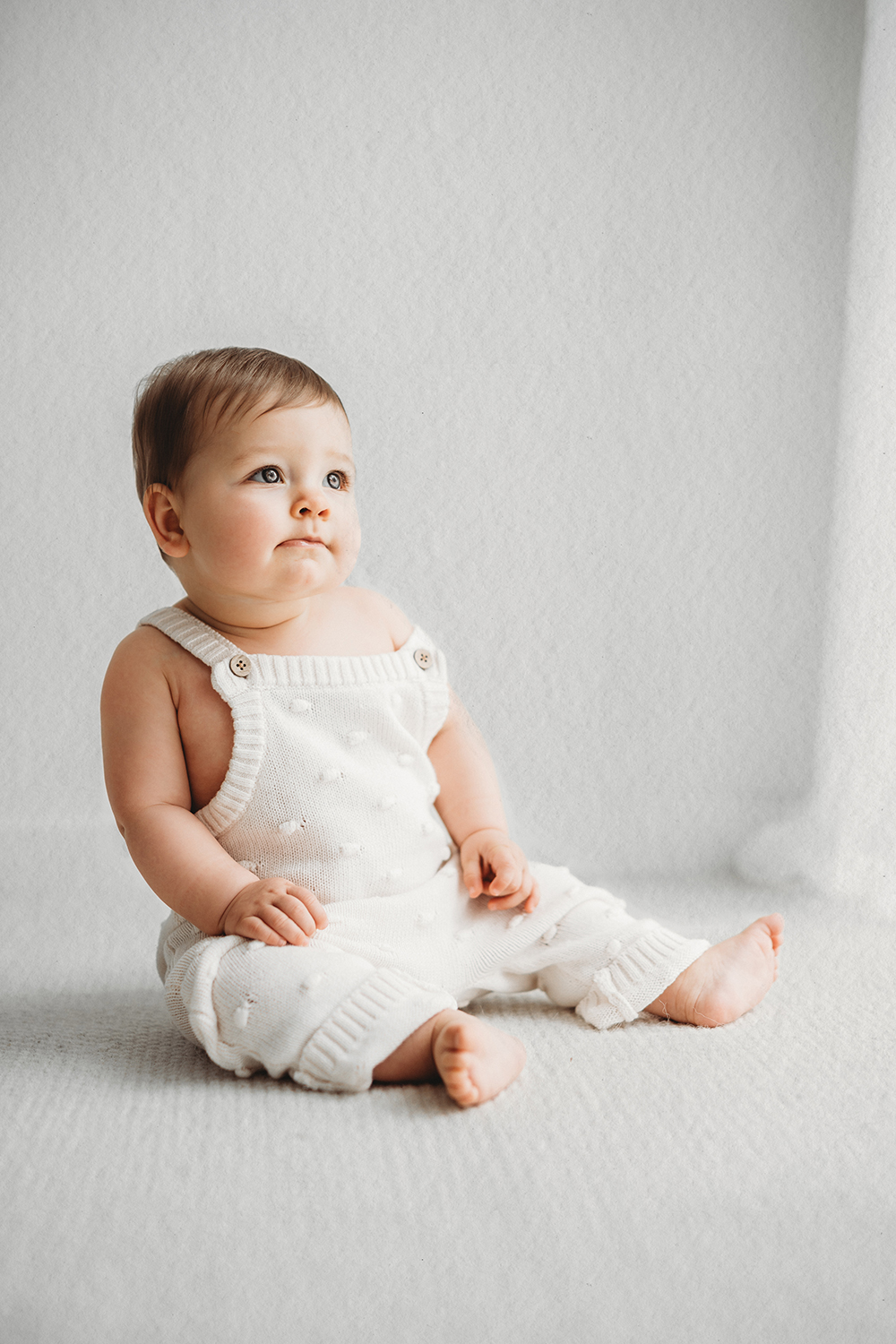 De babyshoots zijn perfect voor kindjes tussen de 7 en 10 maanden. Mijn favoriete leeftijd? Rond de 8 a 9 maanden, wanneer ze zelfstandig kunnen zitten en vol nieuwsgierigheid kijken met van die lekker bolle wangetjes.